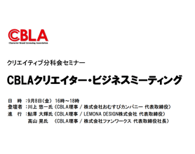 - 進 行:高山 晃氏(CBLA理事 / 株式会社ファンワークス 代表取締役社長)
